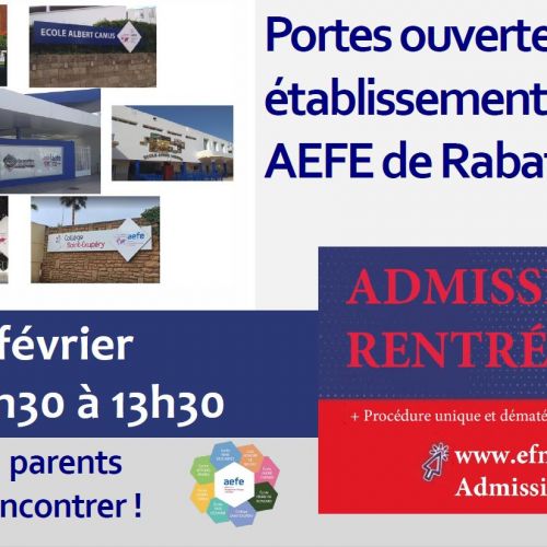 L’école Pierre de Ronsard ouvrira ses portes aux futurs parents et élèves le samedi 5 février 2022 de 9h30 à 13h 30. A cette occasion, plusieurs ateliers seront proposés: – Présentation du réseau AEFE, du pôle de Rabat-Kénitra et de l’école Pierre de Ronsard …